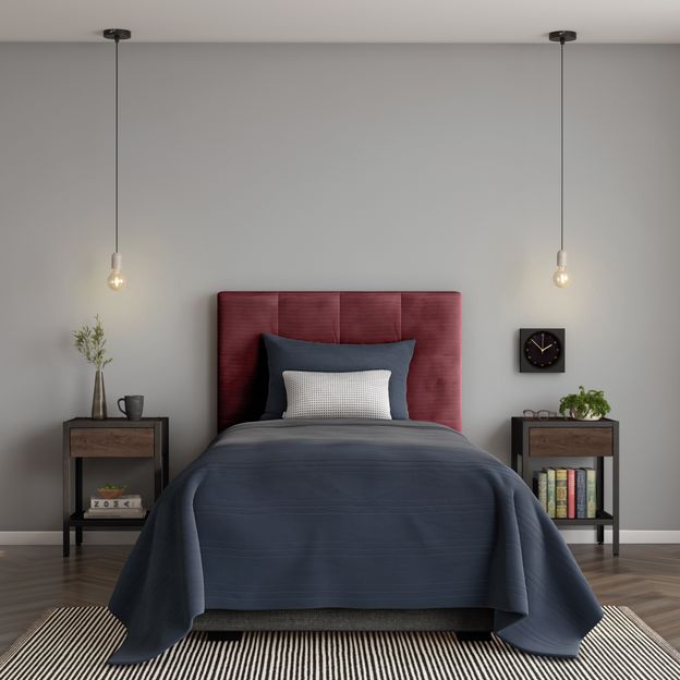 Cabeceira para cama box de solteiro, com estrutura em madeira maciça (Eucalipto) e chapa de MDF revestida com espuma (D20) e tecido veludo cotelê 100% poliéster. Possui detalhes em capitonês. Para uso fixa à parede.