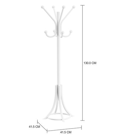 Cabideiro de chão infantil, em tubo de aço com acabamento em pintura epóxi-pó. Possui 8 hastes.