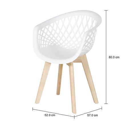 Cadeira com braços, com estrutura em madeira maciça (Tauari) com aplicação de verniz e assento/encosto em polipropileno. Possui sapatas plásticas.
