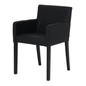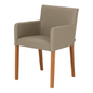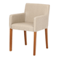 Cadeira com braços, com estrutura em madeira maciça (Tauari) tingida com aplicação de verniz poliuretano. Possui assento e encosto em compensado multilaminado revestidos com espuma (D26/assento e D20/encosto) e tecido tramado 58% polipropileno/42% olefin.