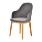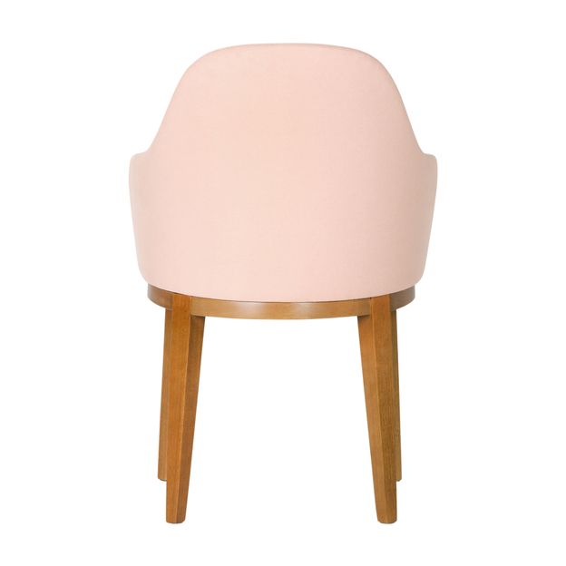 Cadeira com braços, com estrutura em madeira maciça (Eucalipto) tingida com aplicação de verniz e assento/encosto em MDF e percintas elásticas revestidos com espuma (D45/assento e D23/encosto) e tecido 100% algodão.
