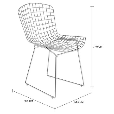 Para uso com almofada da mesma linha (vendida separadamente). Carga máxima: 90kg. Desenvolvida com base no clássico de Harry Bertoia, em domínio público; sujeita a pequenas variações inerentes ao contexto produtivo atual.Altura até o assento: 46 cm.