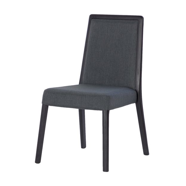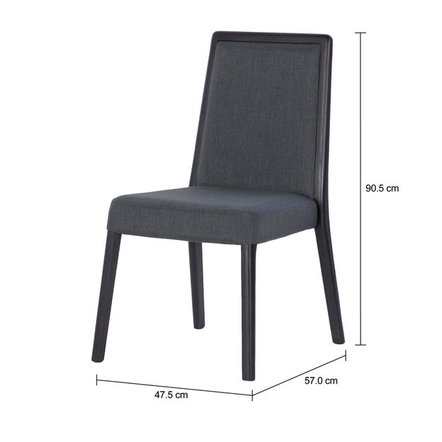 Cadeira com estrutura em madeira maciça (Tauari) tingida com aplicação de verniz poliuretano e assento/encosto MDF revestido com espuma (D26/assento e D20/encosto) e tecido.