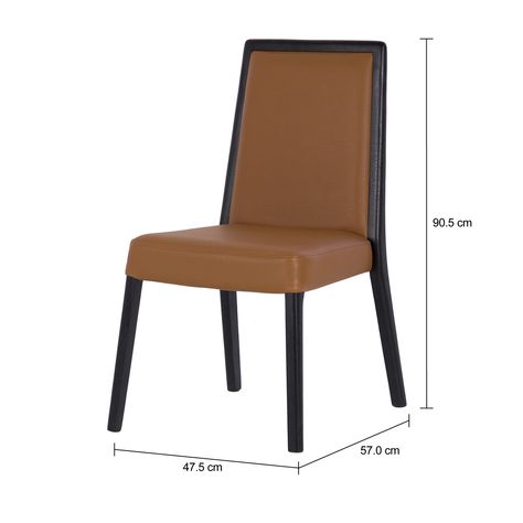 Cadeira com estrutura em madeira maciça (Tauari) tingida com aplicação de verniz poliuretano e assento/encosto em espuma (D26/assento e D20/encosto) e revestimento sintético poliuretano.