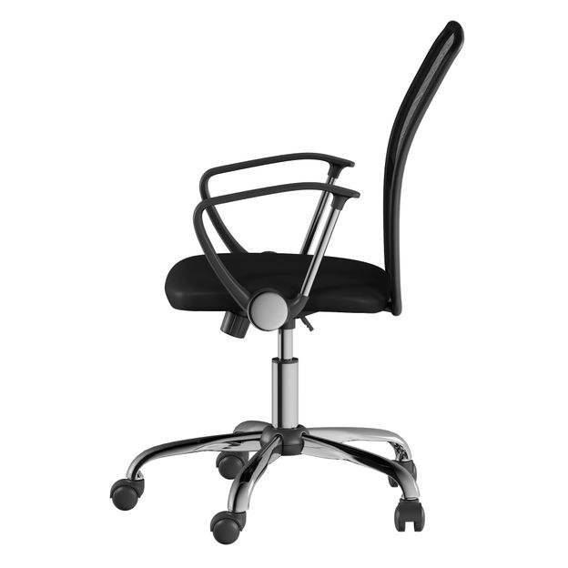 Possui braços em polipropileno, apoio para lombar e rodízios em nylon. Carga máxima suportável: 120kg.Altura até o assento: 45 cm (mínima)/51,7 cm (máxima) e até os braços: 66 cm (mínima)/73,5 cm (máxima).