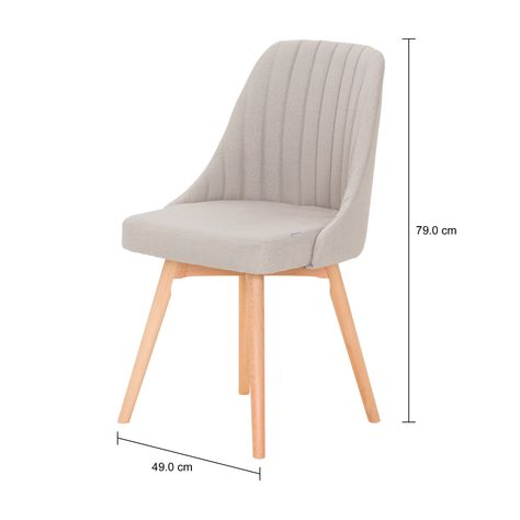 Cadeira com estrutura em madeira maciça (Faia) tingida com acabamento em verniz e assento/encosto em compensado revestido com espuma (D28/assento e D24/encosto) e tecido 100% poliéster.