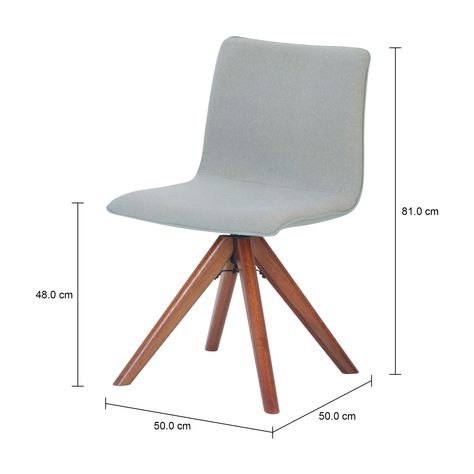 Cadeira giratória, com base em madeira maciça (Eucalipto) tingida com aplicação de verniz e assento/encosto em compensado multilaminado revestido com espuma (D28) e tecido 100% poliéster com detalhes em debrum.