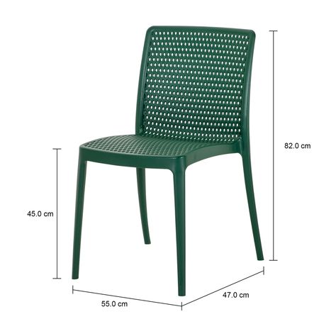 A cadeira Dots possui ótima relação custo x benefício e pode ser utilizada em espaços residenciais ou institucionais. Seu desenho se encaixa ao corpo e proporciona conforto e estabilidade ao sentar-se. Além disso, permite o empilhamento de até 4 unidades, quando não está em uso.O tratamento contra raios UV a protege e garante a integridade da matéria-prima, evitando o ressecamento e garantindo a sua resistência estrutural e a durabilidade da sua cor. Já a sua segurança e qualidade são validadas por laboratório creditado pelo INMETRO.