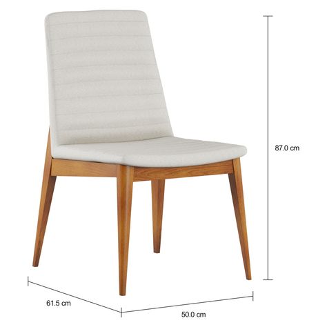 Cadeira com estrutura em madeira maçica (Eucalipto) tingida com acabamento em verniz. Possui assento em MDF e encosto em compensado revestidos com espuma (D28/assento e D23/encosto) e tecido 37% algodão/35% poliéster/28% polipropileno.