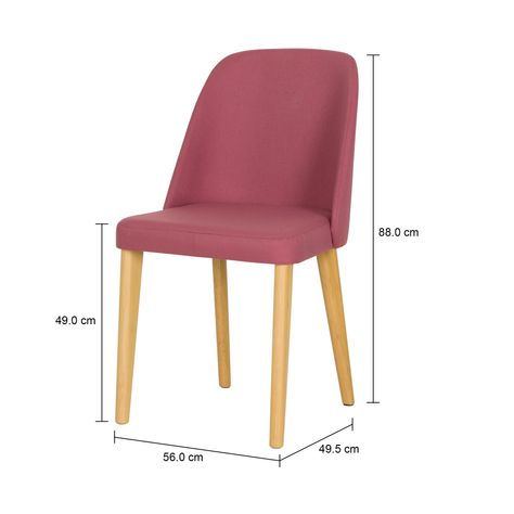 Cadeira com pés em madeira maçica de reflorestamento (Eucalipto) tingida com aplicação de verniz e assento/encosto em compensado multilaminado revestido com espuma (D26/assento e D18/encosto) e tecido 100% polipropileno.