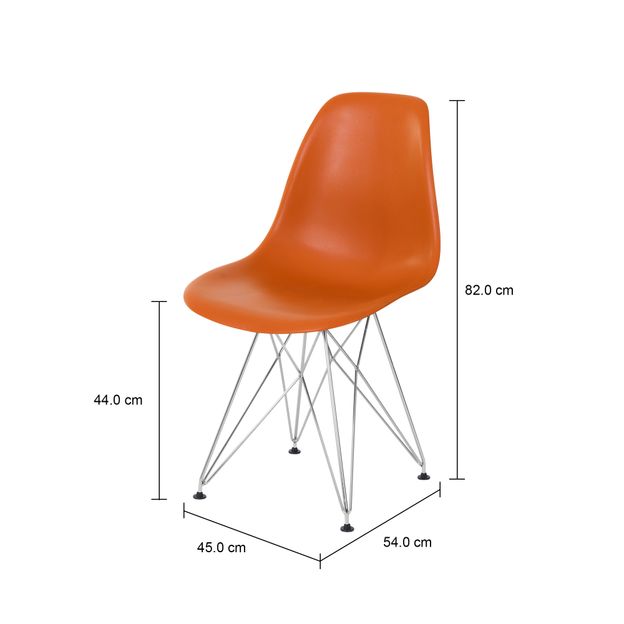 Desenvolvidas com base no clássico de Charles & Ray Eames, em domínio público; sujeito a pequenas variações inerentes ao contexto produtivo atual. Carga máxima suportável: 110kg/cada cadeira. Altura até o assento: 43,5 cm.