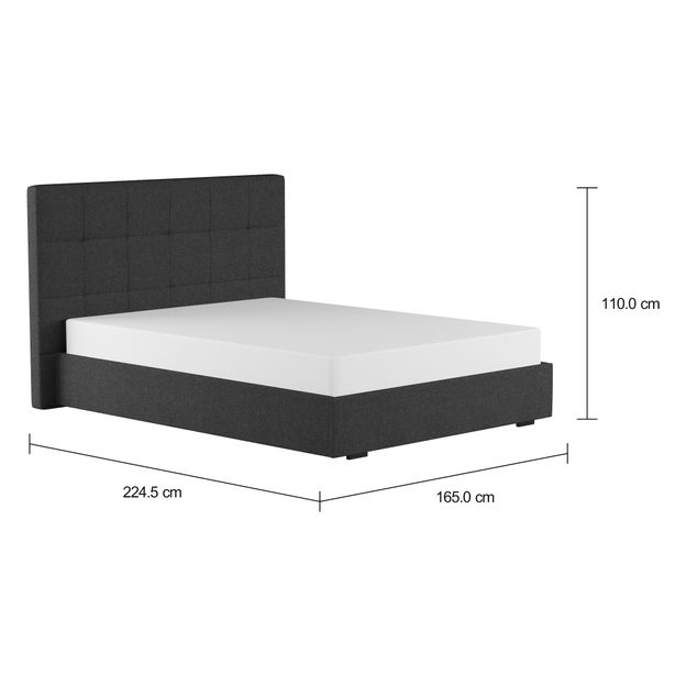 Cabeceira para cama box de casal, com estrutura em madeira maciça (Eucalipto) e chapa de MDF revestida com espuma (D20) e tecido 73% polipropileno/27% poliéster. Possui detalhes em capitonês. Para uso fixa à parede.Cama de casal com estrutura em madeira maciça (Eucalipto) e chapa de MDF revestida com espuma (D20) e tecido 73% polipropileno/27% poliéster. Possui pés maciços pintados.