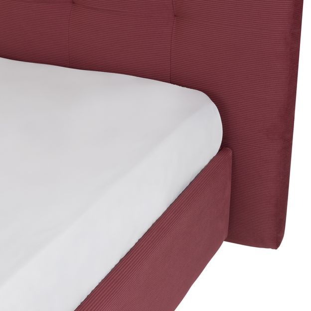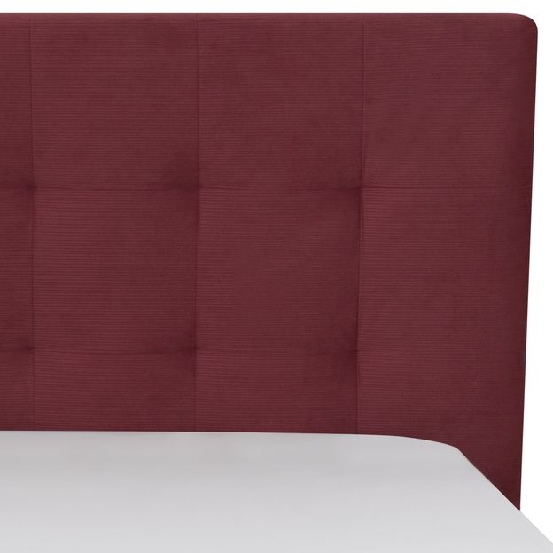 Cabeceira para cama box de casal, com estrutura em madeira maciça (Eucalipto) e chapa de MDF revestida com espuma (D20) e tecido veludo cotelê 100% poliéster. Possui detalhes em capitonês. Para uso fixa à parede.Cama de casal com estrutura em madeira maciça (Eucalipto) e chapa de MDF revestida com espuma (D20) e tecido veludo cotelê 100% poliéster. Possui pés maciços pintados.