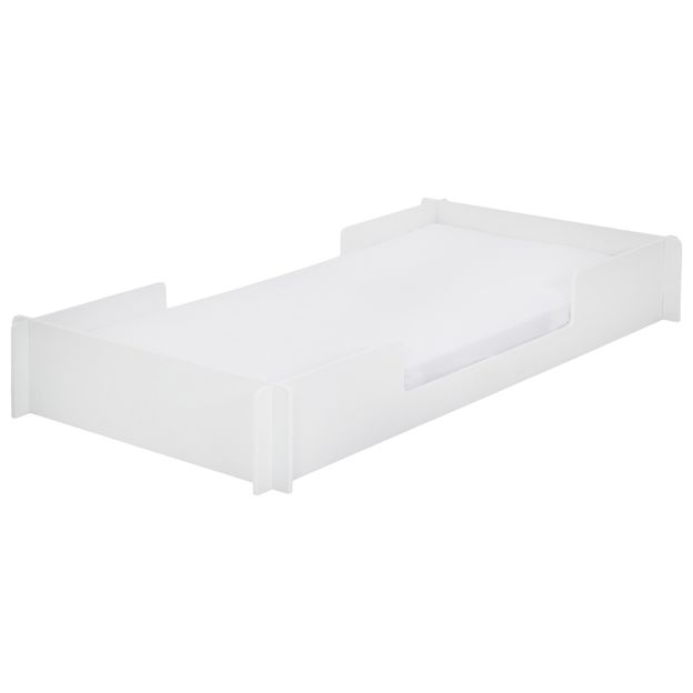 Cama infantil em MDF (Medium Density Fiberboard) com acabamento em pintura. Possui estrado em MDF e sapatas plásticas.