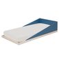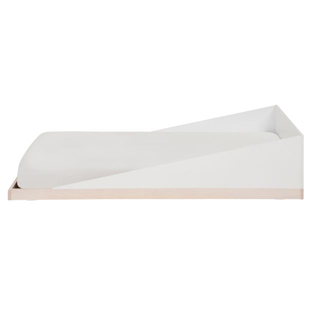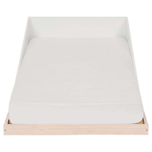 Cama júnior em MDF (Medium Density Fiberboard) de 15 mm com acabamento em pintura e madeira maciça de reflorestamento (Pinus Elliottii) tingida com aplicação de verniz. Possui estrado em (Pinus Elliottii) e sapatas plásticas.
