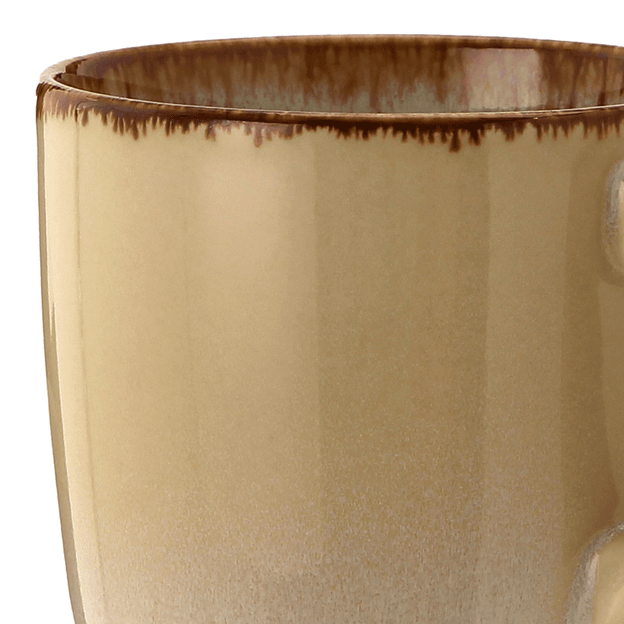 Caneca, em cerâmica esmaltada. Possui detalhe em pintura na borda.