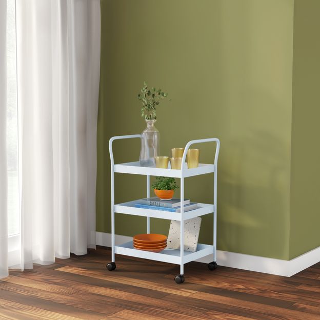 Com desenho assinado pela talentosa equipe T S Design, o carrinho Olle é a peça-chave em cozinhas, salas de jantar e bares residenciais com visual urbano e descontraído.Compacto, fácil de ambientar e disponível em uma cartela de cores variadas, ele é confeccionado em tubo e chapa de aço com pintura em epóxi-pó; matérias-primas que garantem a resistência e a durabilidade ideais para o dia a dia. Suas prateleiras permitem apoiar copos, garrafas de bebidas, vasos, objetos decorativos e o que mais você precisar. Já os seus rodízios e alças laterais facilitam o manuseio e deslocamento do produto de um lugar ao outro.