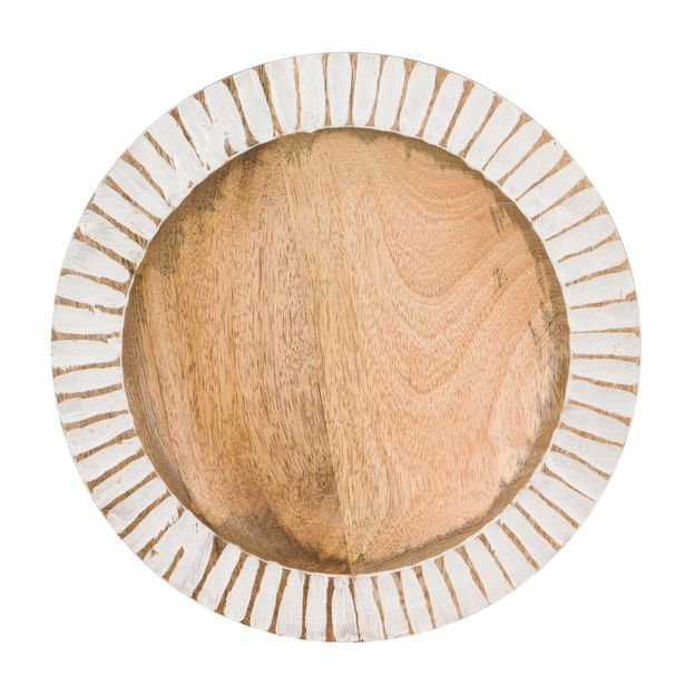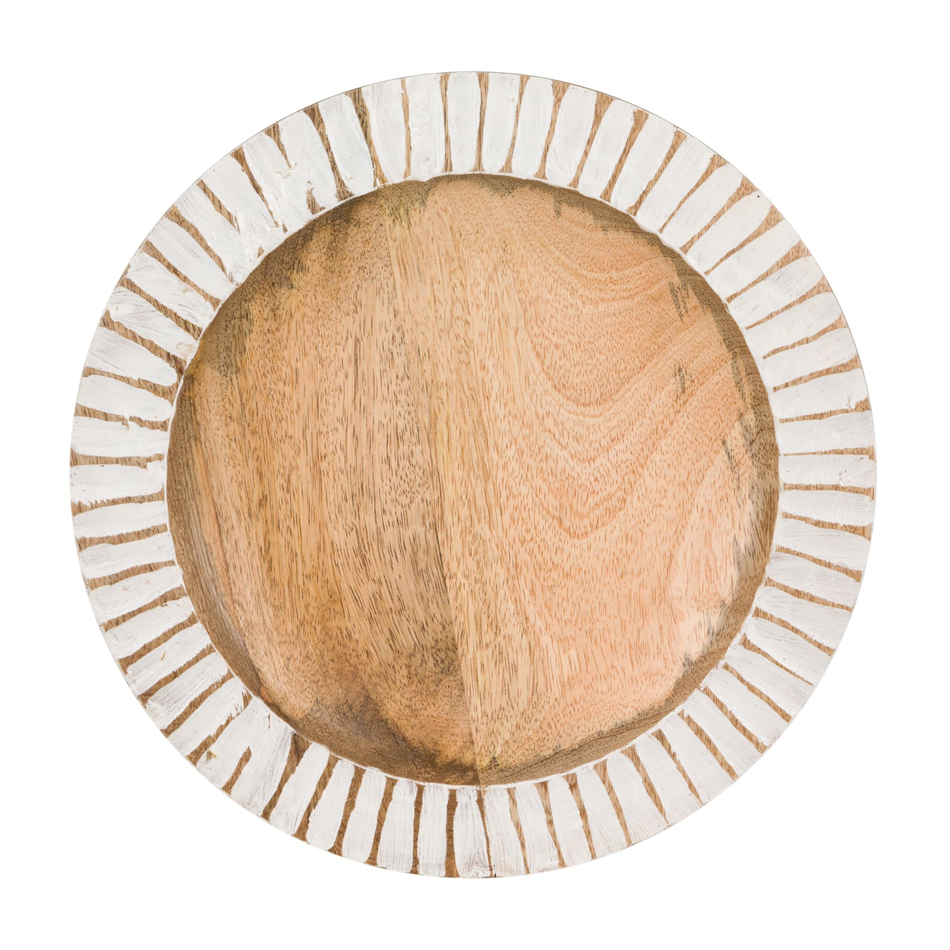 Centro de mesa em madeira maciça (Mango) com detalhes em pintura.