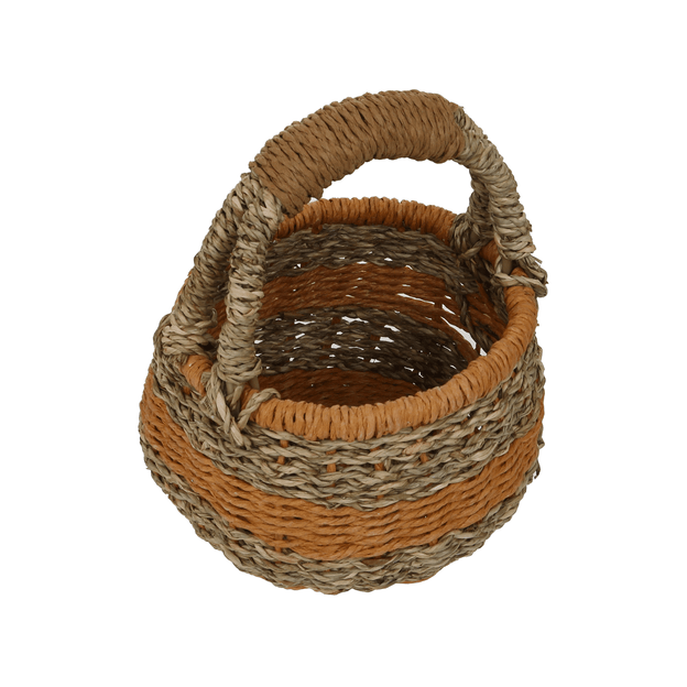 Cesto, confeccionado artesanalmente em fibra natural (Seagrass) trançada com detalhes em cordas de papel.