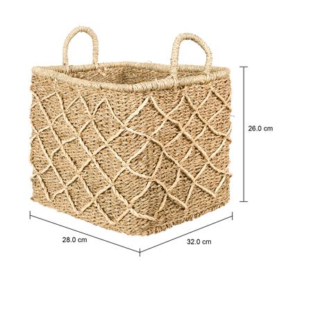 Cesto, com alças, confeccionado artesanalmente em fibra natural de Seagrass trançada.