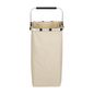 Cesto para roupas, em tecido 95% poliéster/5% PVC. Possui alça dobrável com proteção em E.V.A., estruturas laterais removíveis em alumínio e plástico, fixadas por velcro, e fundo em cartão rígido.