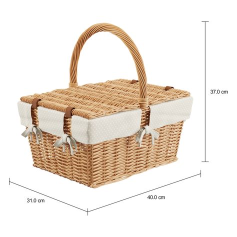 Cesto para piquenique, com alça, confeccionado artesanalmente em vime trançado. Possui forro não-removível em tecido 42% linho/39% poliéster/14,4% algodão/4,6% rayon.
