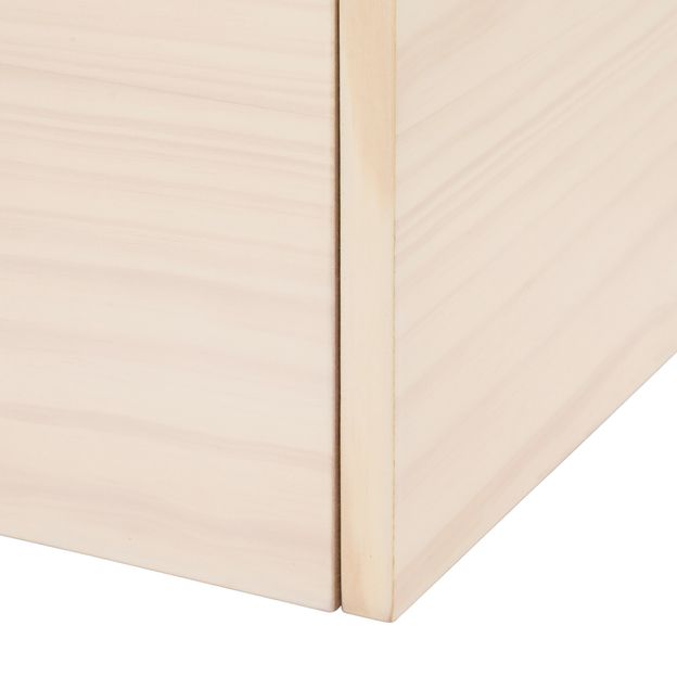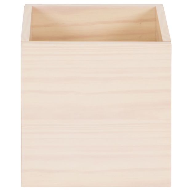 Caixa organizadora em MDF (Medium Density Fiberboard) de 15 mm revestido com lâmina de madeira maciça (Pinus Elliottii) tingida com aplicação de verniz. Possui recortes usinados.