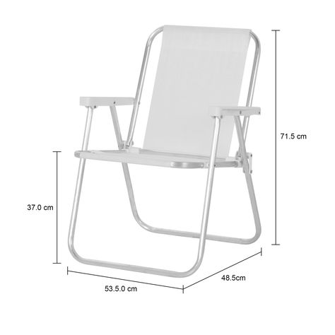 Pode ser usada em áreas externas, guardar após o uso. O alumínio exposto à intempérie tende a apresentar gradativamente perda de brilho e alteração na cor. Carga máxima suportável: 100kg.Altura até o assento: 38 cm e até os braços: 52,5 cm.