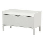 Módulo inferior em MDP de 15 mm revestido com laminado melamínico baixa pressão e bordas em PVC. Possui 1 gaveta com corrediças telescópicas, puxador em chapa de aço pintada e pés em polipropileno.