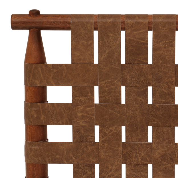 Cabeceira para cama box de casal, com estrutura em madeira maciça de reflorestamento (Eucalipto) tingida com verniz poliuretano e acabamento encerado. Possui encosto trançado manualmente em tiras de revestimento ecológico com reforços em cintas de nylon.