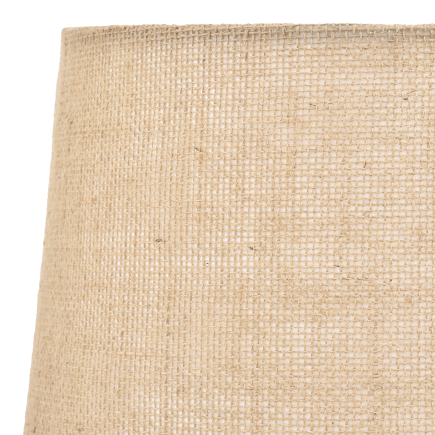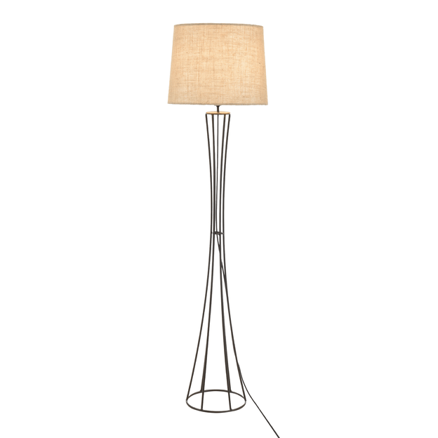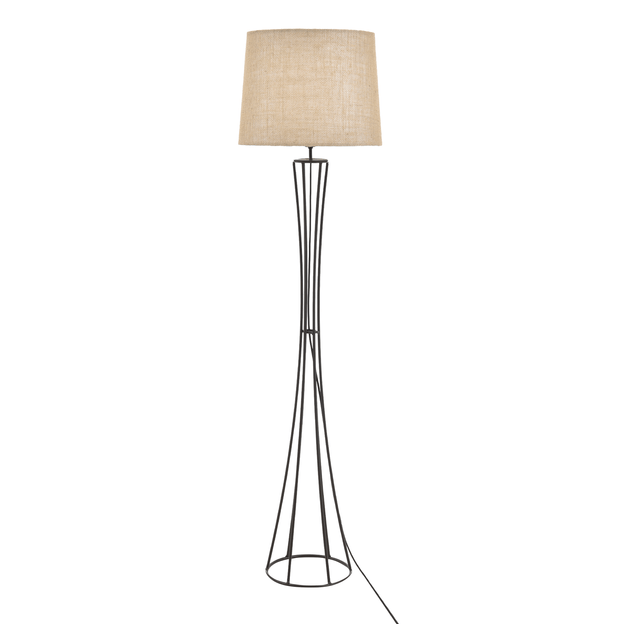 Base de luminária de piso, 127/220V, em perfil de aço com acabamento em pintura epóxi-pó.Cúpula com estrutura em aramado de aço com acabamento em pintura epóxi-pó revestida com acetato e juta natural.