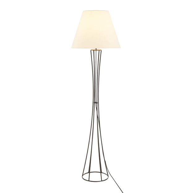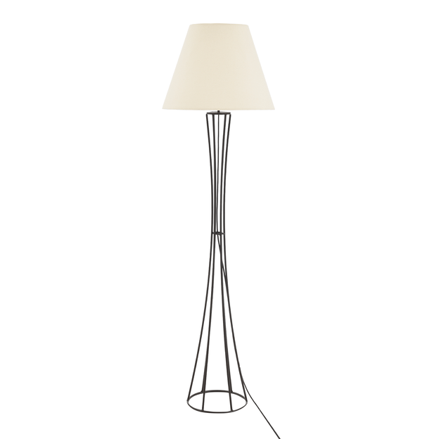 Base de luminária de piso, 127/220V, em perfil de aço com acabamento em pintura epóxi-pó.Cúpula com estrutura em aramado de aço com acabamento em pintura epóxi-pó revestida com acetato e tecido 100% algodão.