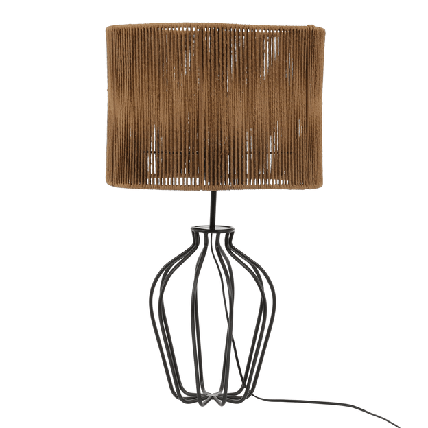 Base para luminária de mesa, 127/220V, em tubo de aço com acabamento em pintura epóxi-pó. Possui fio com comprimento de 1,20 m de extensão.Cúpula, confeccionada artesanalmente em corda de papel com estrutura em aramado de metal.