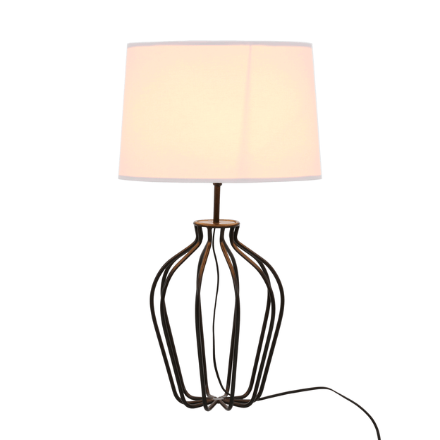Base para luminária de mesa, 127/220V, em tubo de aço com acabamento em pintura epóxi-pó. Possui fio com comprimento de 1,20 m de extensão.Cúpula com estrutura em aramado de aço com acabamento em pintura epóxi-pó revestida com tecido 100% algodão.