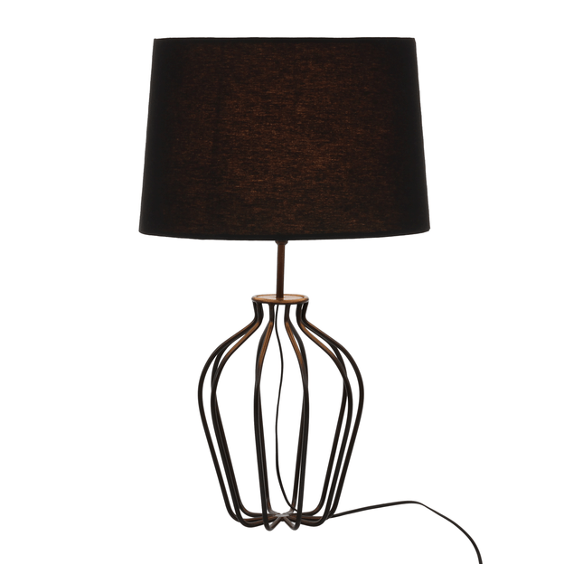 Base para luminária de mesa, 127/220V, em tubo de aço com acabamento em pintura epóxi-pó. Possui fio com comprimento de 1,20 m de extensão.Cúpula com estrutura em aramado de aço com acabamento em pintura epóxi-pó revestida com tecido 100% algodão.