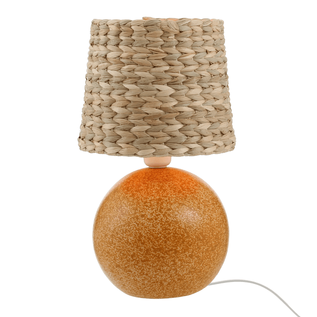 Base de luminária de mesa, em cerâmica com acabamento em pintura e toque texturizado. Possui fio com comprimento de 1,20 m de extensão.Cúpula, confeccionada artesanalmente com estrutura em aramado de aço pintado em epóxi-pó revestido com fibra natural de taboa trançada. Base vendida separadamente. Para uso com lâmpada fluorescente, máx. 15W ou LED, máx. 8W 127/220V (não inclusa).