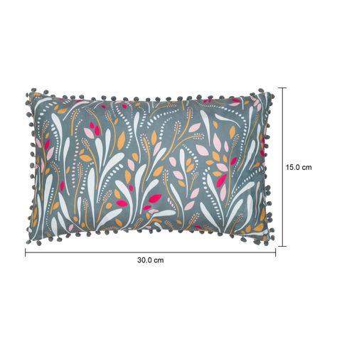 Almofada, em tecido 100% poliéster, com aplicação de estampa. Possui enchimento em fibra 100% poliéster, acabamento em pompom e toque aveludado.