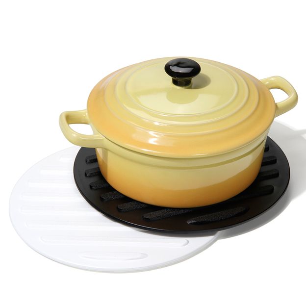 Descanso para panelas e pratos quentes em polipropileno. Resistente a temperaturas de até 120°C.