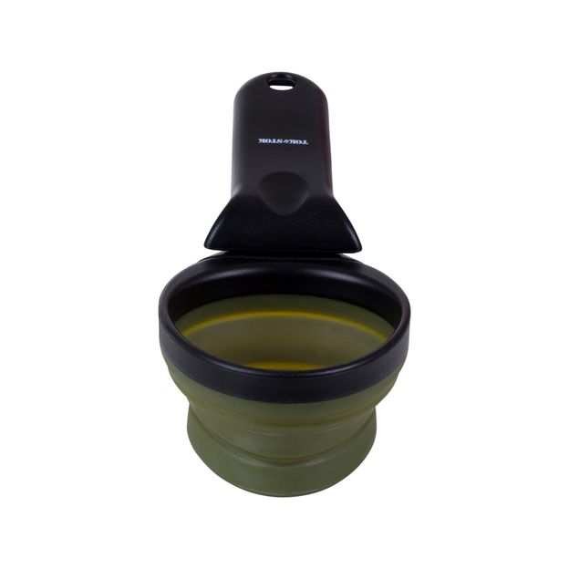 Dosador de ração para pet, retrátil, em ABS e emborrachado termoplástico (TPE). Capacidade 236 ml.