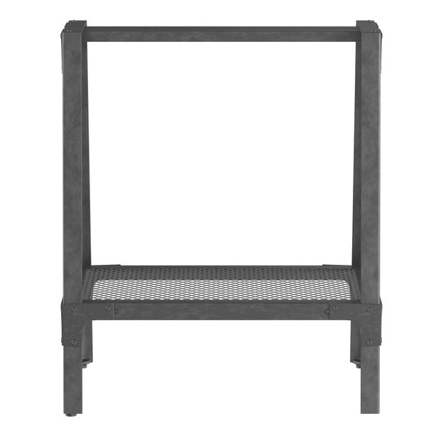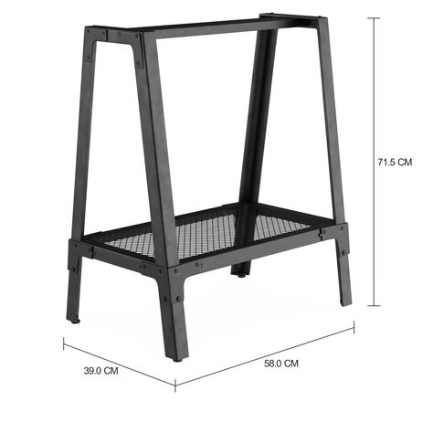 Cavalete com estrutura em aço maciço com tratamento fosfatizado, escovamento manual e acabamento em resina epóxi. Possui 1 prateleira em aramado e sapatas plásticas reguláveis.