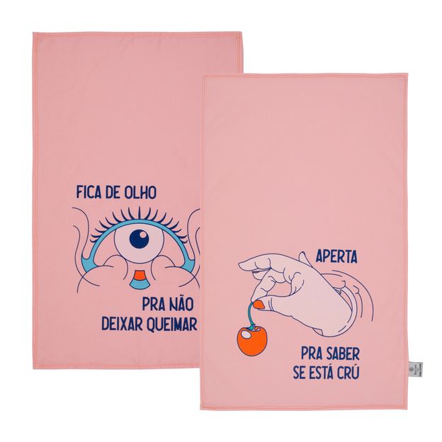 Conjunto com 2 panos de prato em tecido sarjado 100% algodão com aplicação de estampa em silkscreen.