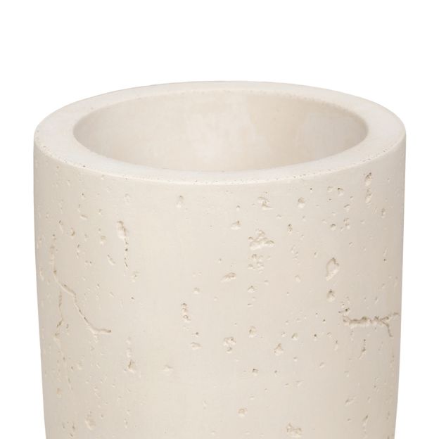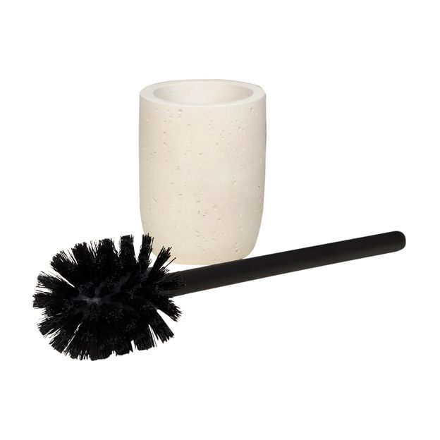 Escova de banheiro em concreto e plástico com acabamento em pintura. Possui cerdas em nylon.