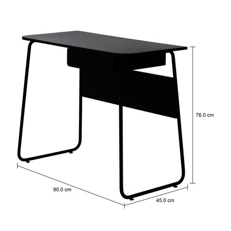 Escrivaninha com estrutura em tubo de aço com acabamento em pintura epóxi-pó e MDP (Medium Density Particleboard) de 15 mm com acabamento em pintura UV e bordas em PVC. Possui 1 gaveta com corrediças metálicas e sapatas plásticas reguláveis.