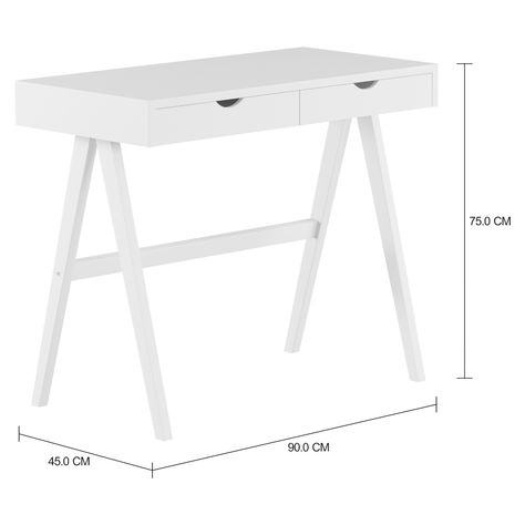 Escrivaninha em MDF (Medium Density Fiberboard) de 15 mm e 25 mm com acabamento em pintura laqueada. Possui 2 gavetas com corrediças telescópicas.