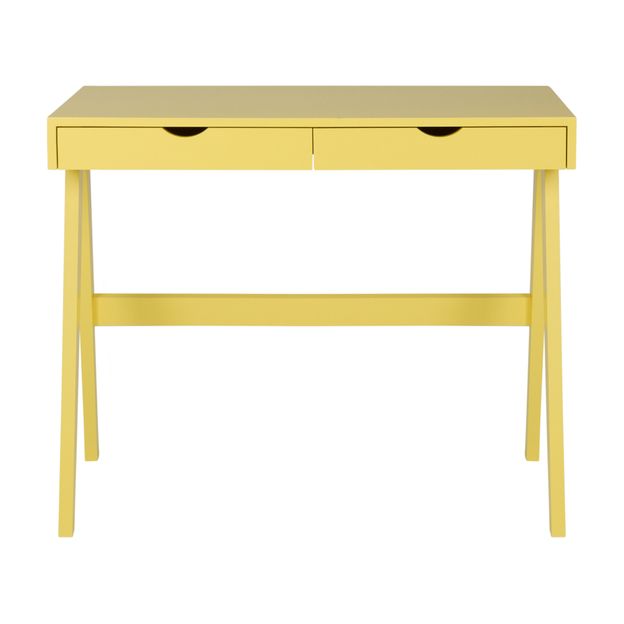 Escrivaninha em MDF (Medium Density Fiberboard) de 15 mm e 25 mm com acabamento em pintura laqueada. Possui 2 gavetas com corrediças telescópicas.