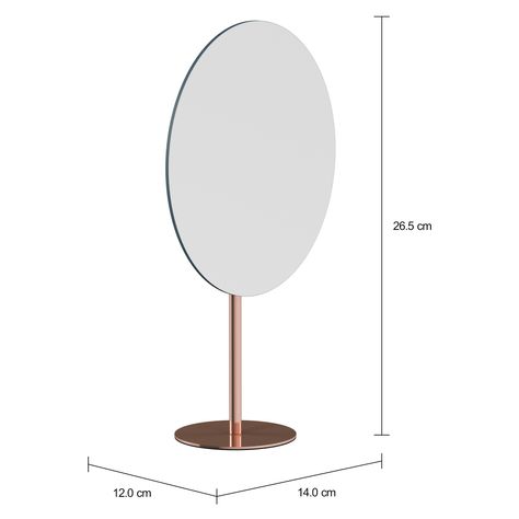 Espelho de mesa, com base em aço inoxidável com acabamento em banho de cobre.