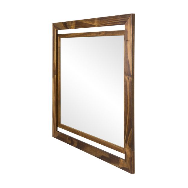 Espelho com moldura em madeira maciça (Pinus Eliottii) com acabamento encerado. Acompanha componentes para fixação.