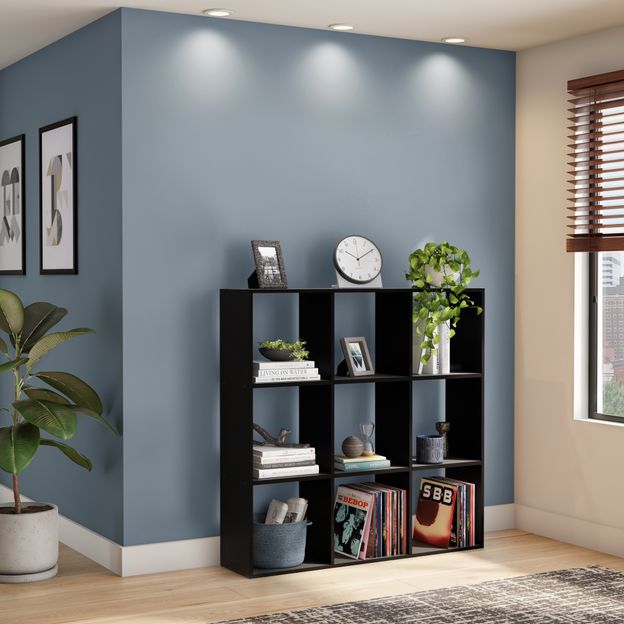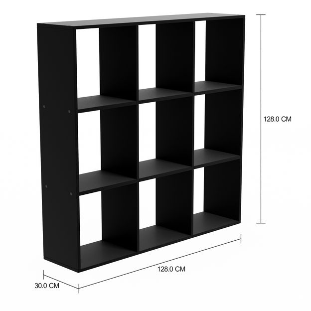 Estante em MDP (Medium Density Particleboard) com acabamento em pintura por impressão. Possui 9 nichos e sapatas plásticas para pequenos desníveis de piso. Permite instalação em paredes de alvenaria e drywall (componentes vendidos separadamente).