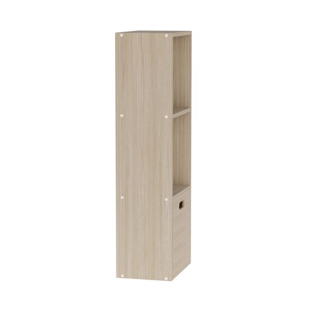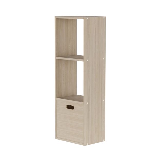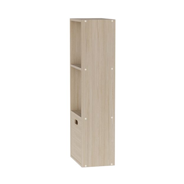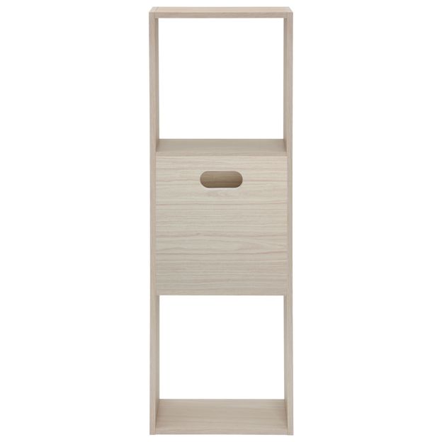 Caixa em MDF (Medium Density Fiberboard) com acabamento em pintura por impressão e bordas em PVC. Possui alças com recorte usinado. Para uso com estantes da mesma linha (vendidas separadamente).Estante em MDP com acabamento em pintura por impressão. Possui 3 nichos e sapatas plásticas. Permite o uso vertical e horizontal, e a instalação suspensa em paredes de alvenaria e drywall (componentes vendidos separadamente).