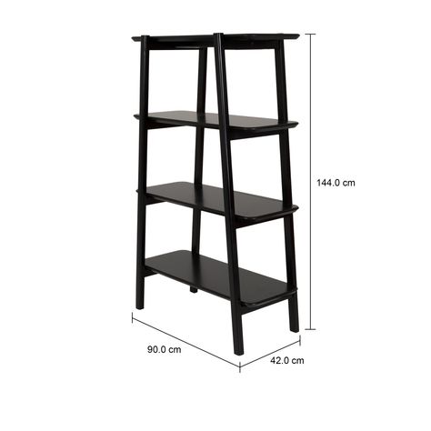 Estante com estrutura em madeira maciça de reflorestamento (Eucalipto) e 5 prateleiras em MDF (Medium Density Fiberboard) de 30 mm com acabamento em pintura poliuretânica.